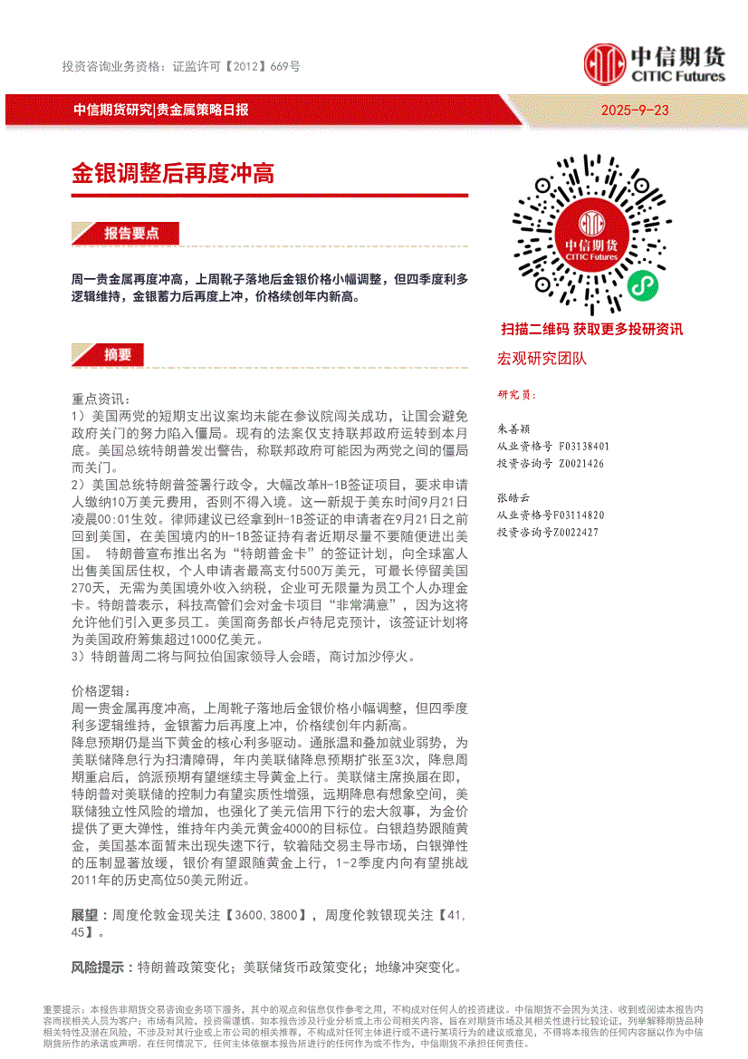 中信期货-贵金属策略日报:金银调整后再度冲高-250923