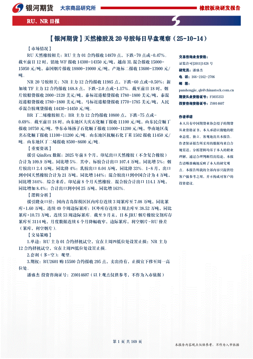 银河期货-天然橡胶及20号胶每日早盘观察-251014