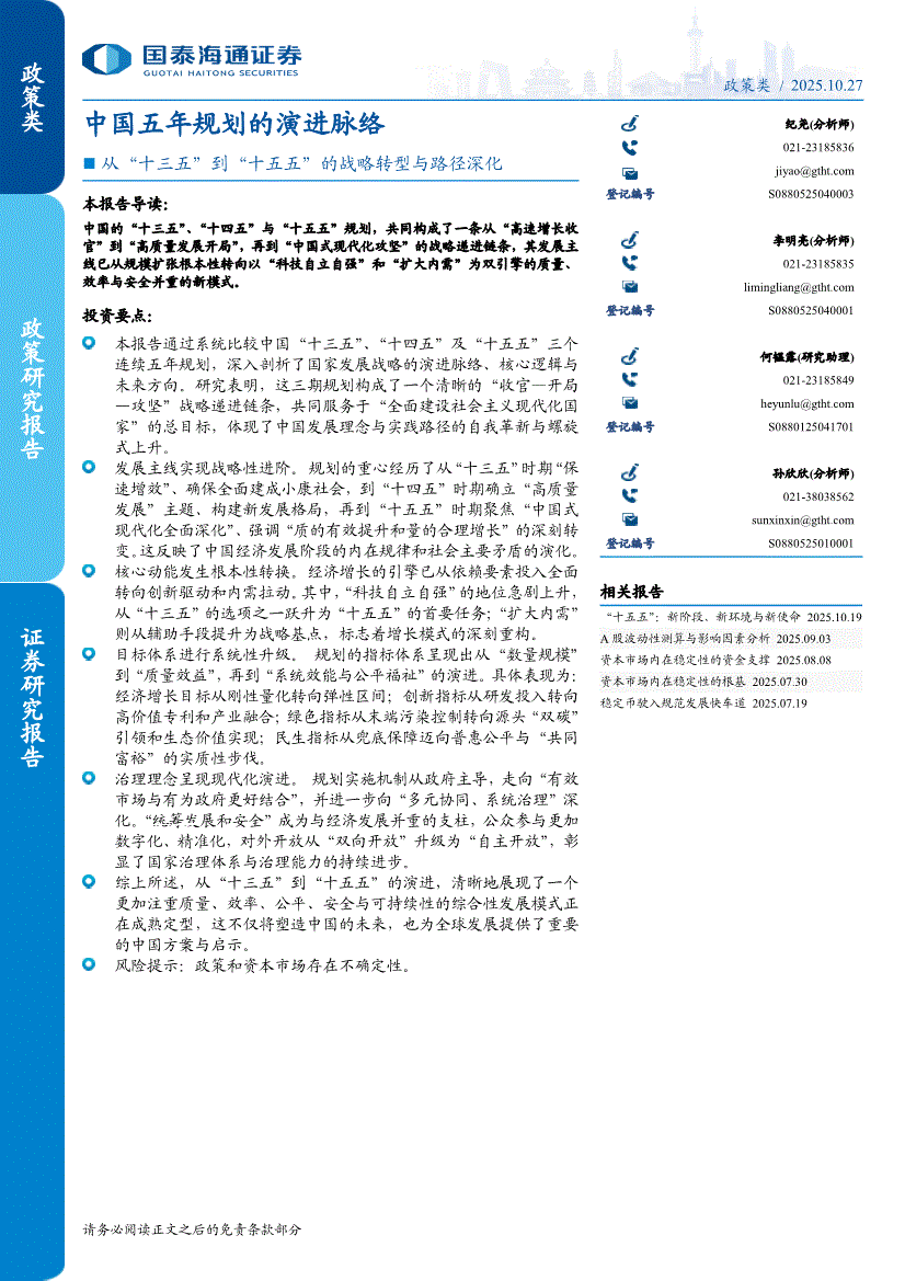 国泰海通证券-从“十三五”到“十五五”的战略转型与路径深化:中国五年规划的演进脉络-251027