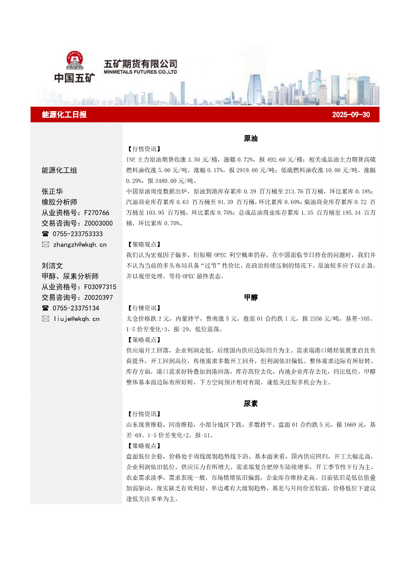 五矿期货-能源化工日报-250930