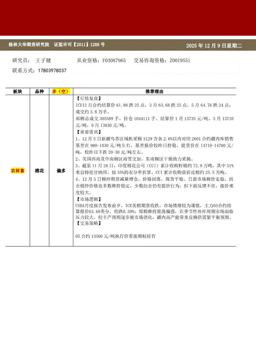 格林大华期货-期货早班车:棉花、苹果、原木-251029