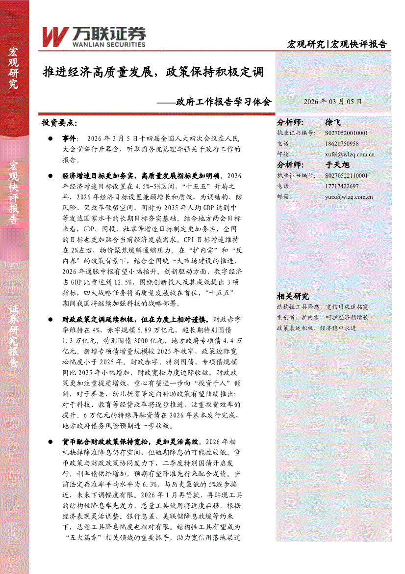 万联证券-政府工作报告学习体会:推进经济高质量发展,政策保持积极定调-260305