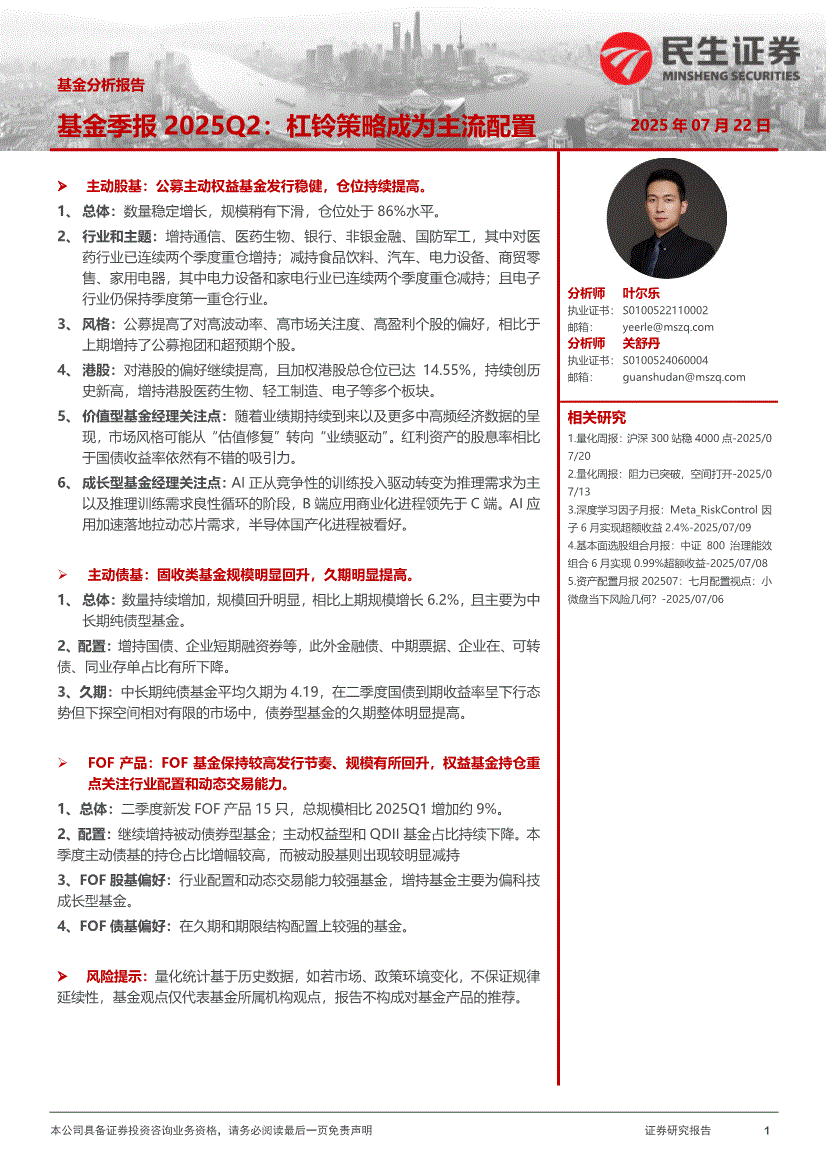 民生证券-基金分析报告:基金季报2025Q2,杠铃策略成为主流配置-250722