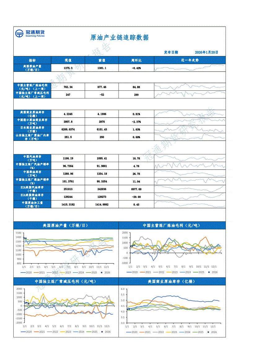 冠通期货-原油产业链追踪数据-260120