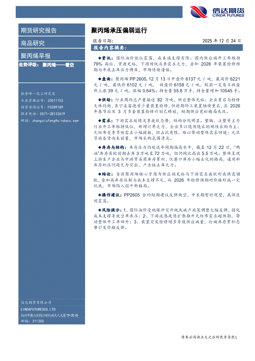 信达期货-聚丙烯早报:聚丙烯承压偏弱运行-251223