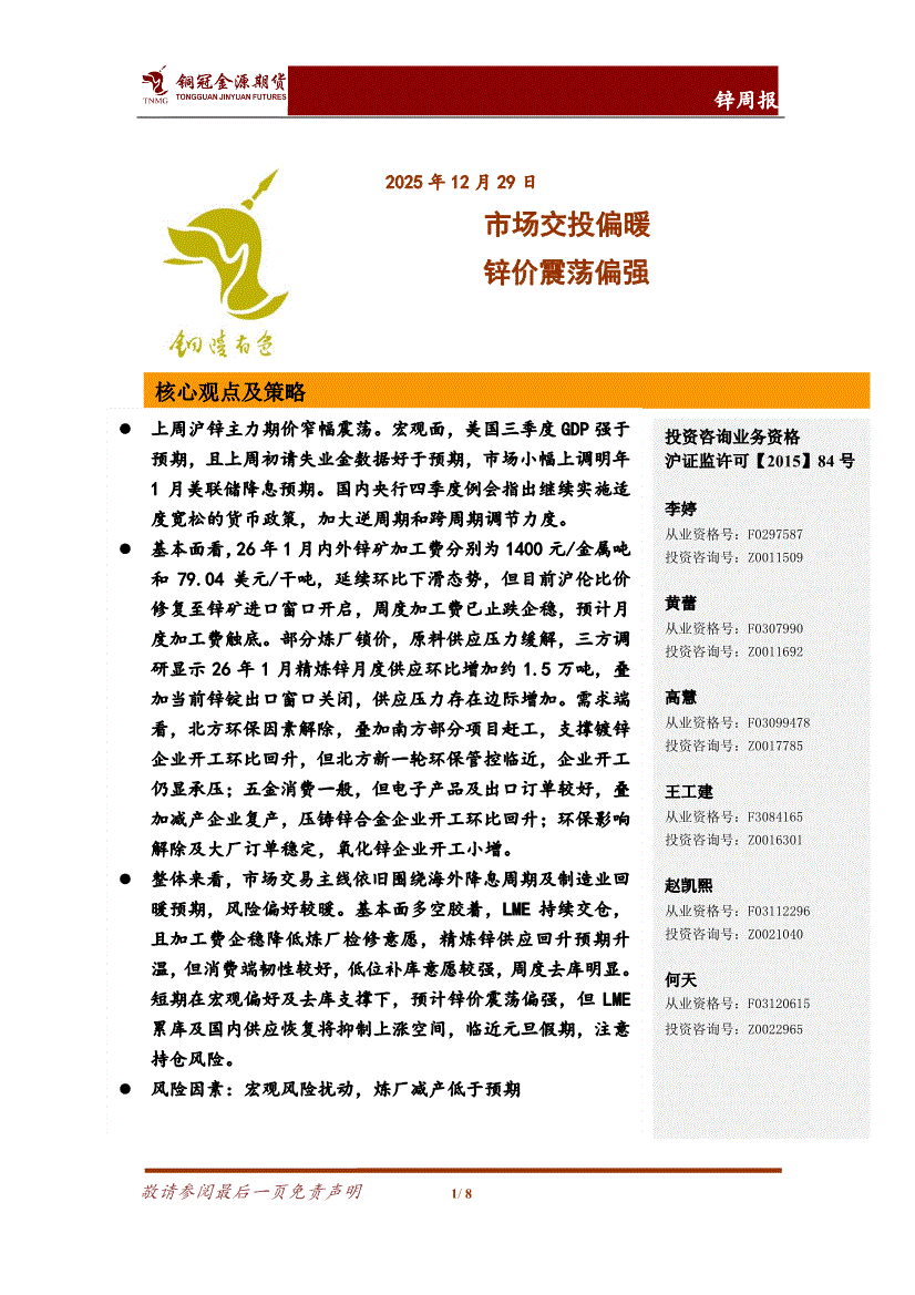 铜冠金源期货-锌周报:市场交投偏暖,锌价震荡偏强-251229