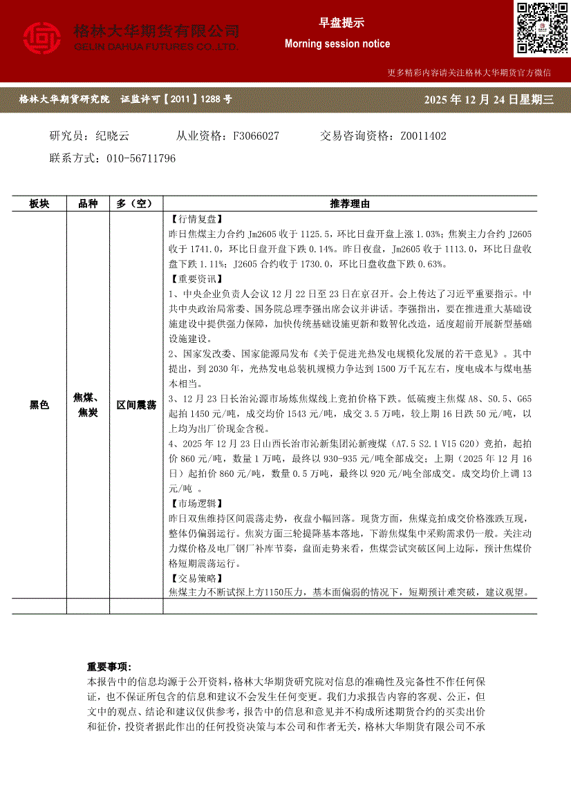 格林大华期货-一周简评:预计钢矿震荡走势-251220