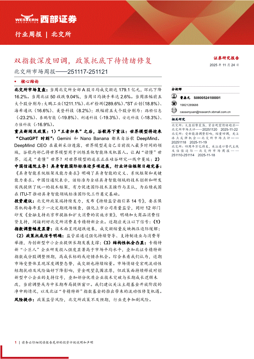 西部证券-北交所市场周报:双指数深度回调,政策托底下待情绪修复-251124