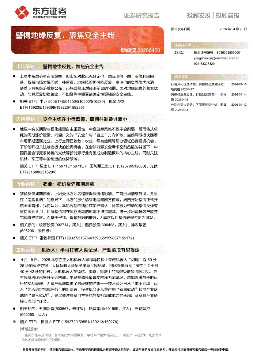 东方证券-朝闻道:警惕地缘反复,聚焦安全主线-260420