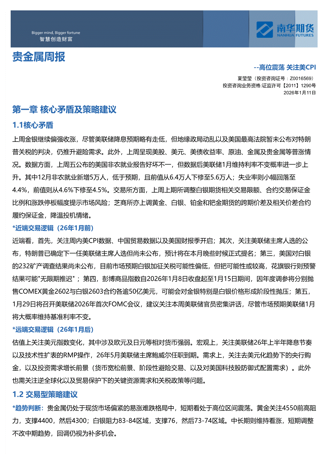 南华期货-贵金属周报:高位震荡,关注美CPI-260111