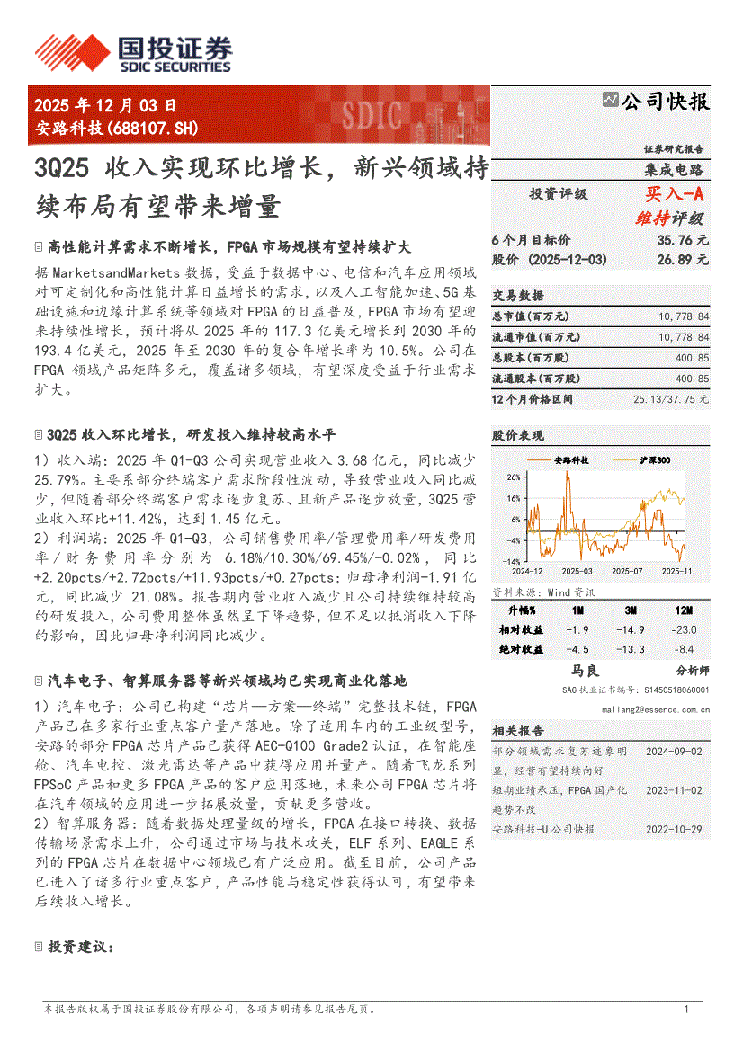 安路科技:国投证券-安路科技-688107-3Q25收入实现环比增长,新兴领域持续布局有望带来增量-251203