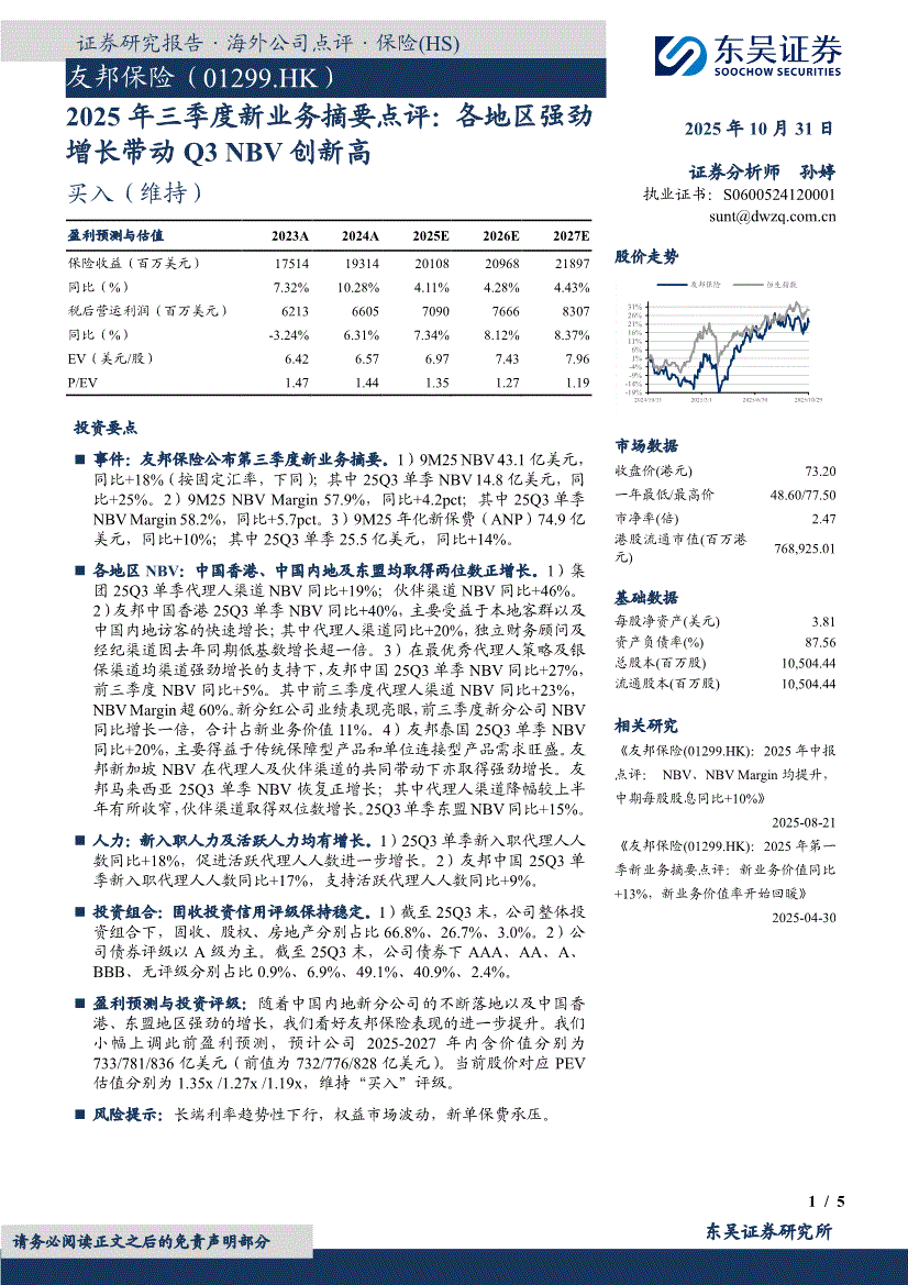 友邦保险:东吴证券-友邦保险-1299.HK-2025年三季度新业务摘要点评:各地区强劲增长带动Q3 NBV创新高-251031