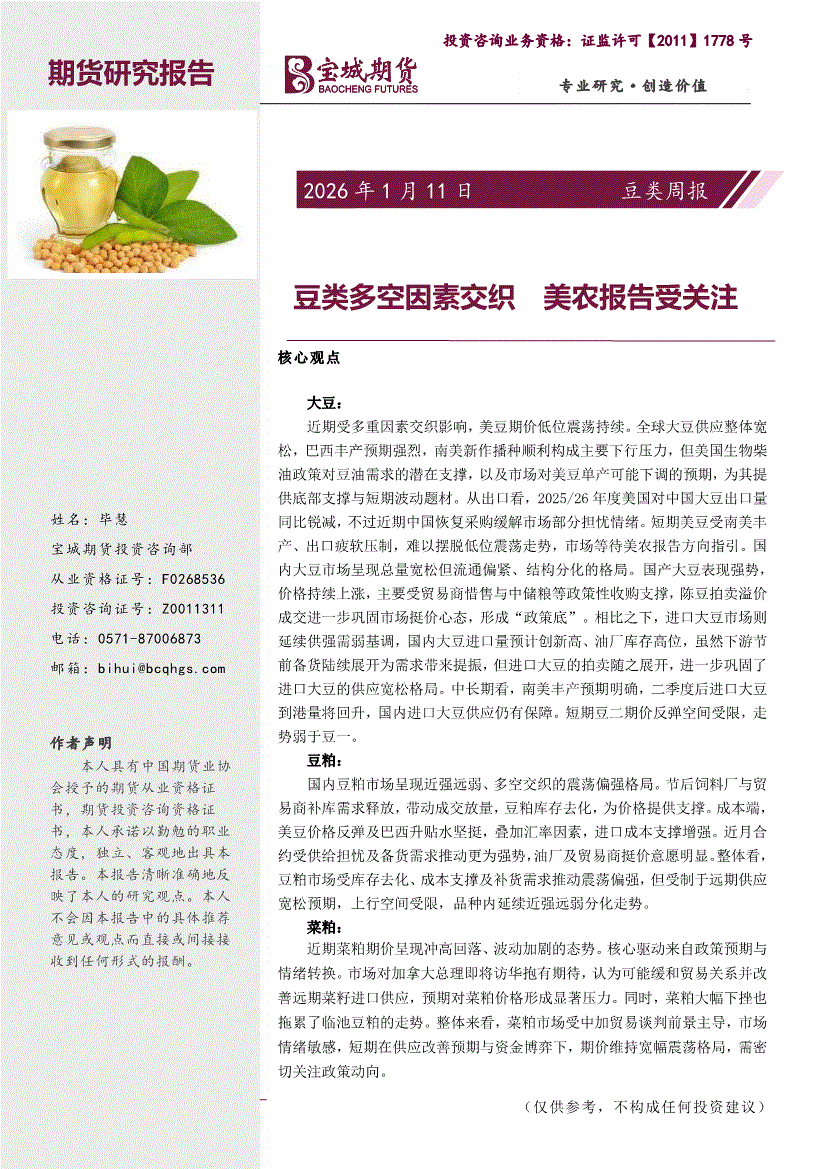 宝城期货-豆类周报:豆类多空因素交织,美农报告受关注-260111