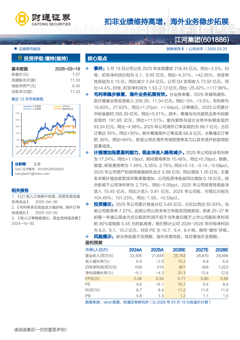 江河集团:财通证券-江河集团-601886-扣非业绩维持高增,海外业务稳步拓展-260320