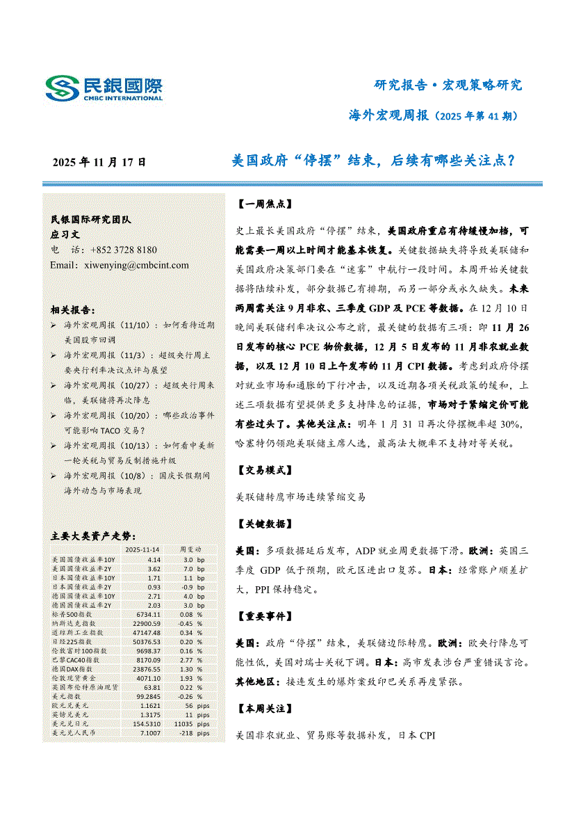民银国际-海外宏观周报(2025年第41期):美国政府“停摆”结束,后续有哪些关注点?-251117
