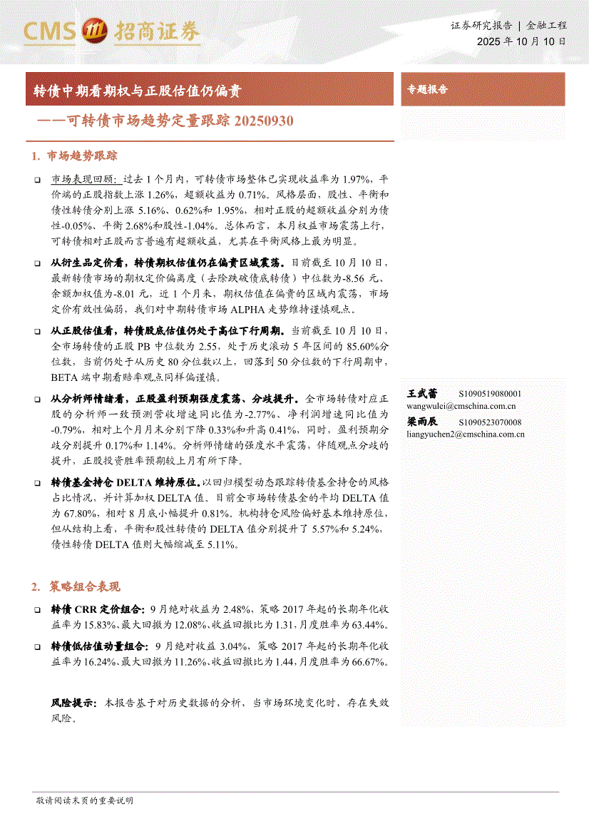 招商证券-可转债市场趋势定量跟踪:转债中期看期权与正股估值仍偏贵-251010