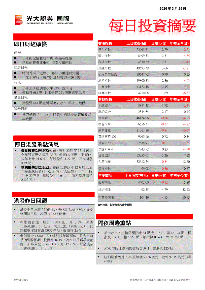 光大证券(国际)-每日投资摘要-260325