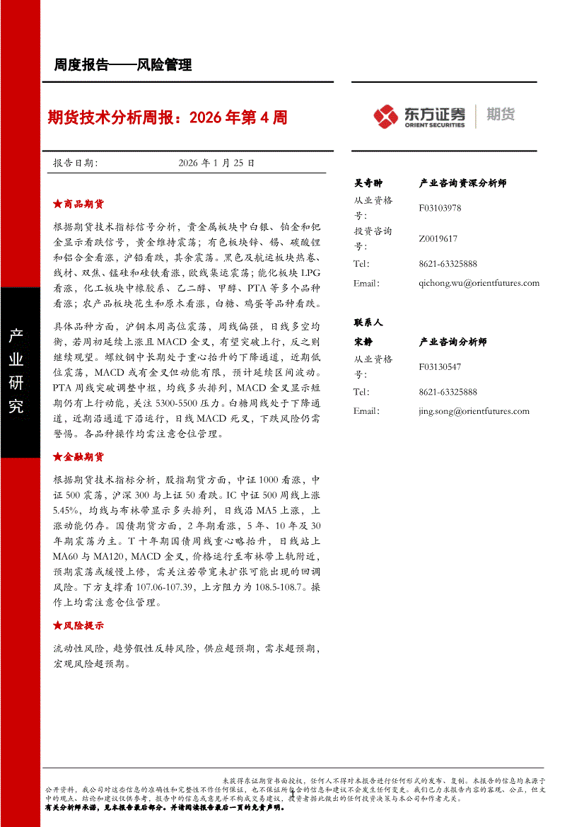 东证期货-期货技术分析周报:2026年第4周-260125