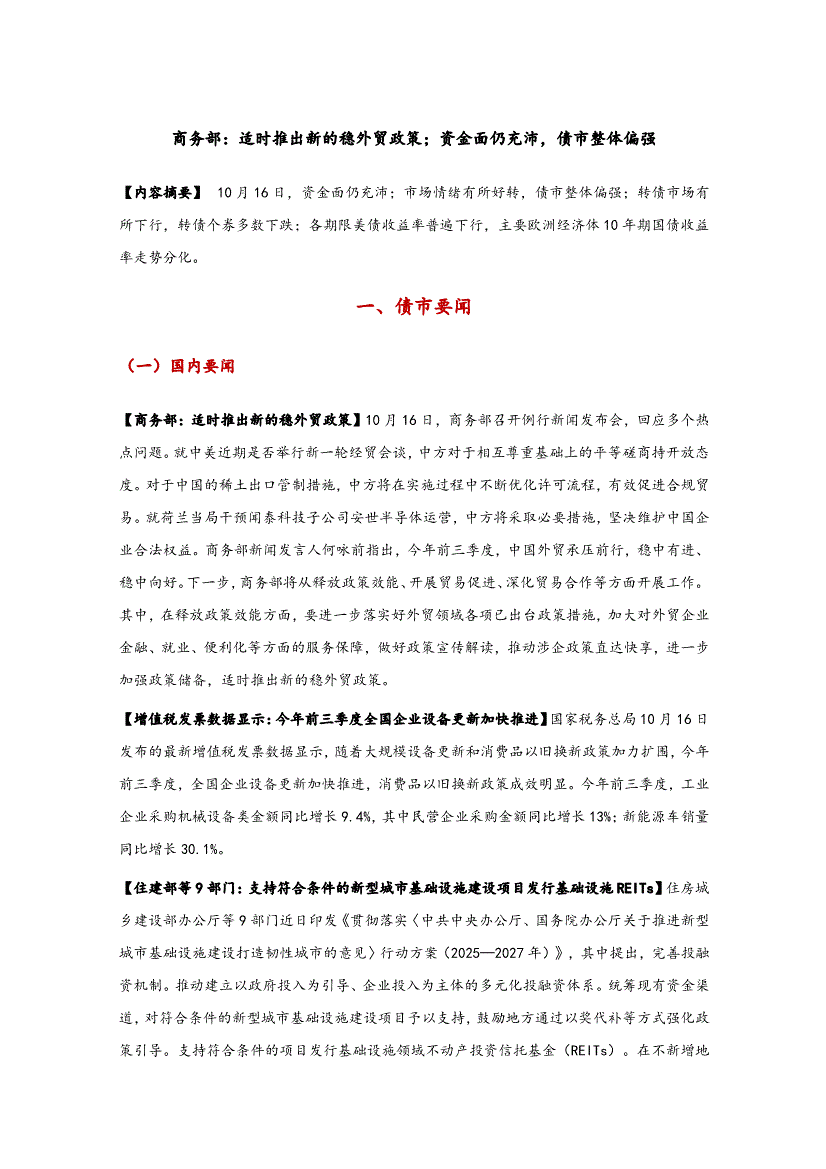 东方金诚-商务部:适时推出新的稳外贸政策;资金面仍充沛,债市整体偏强-251029