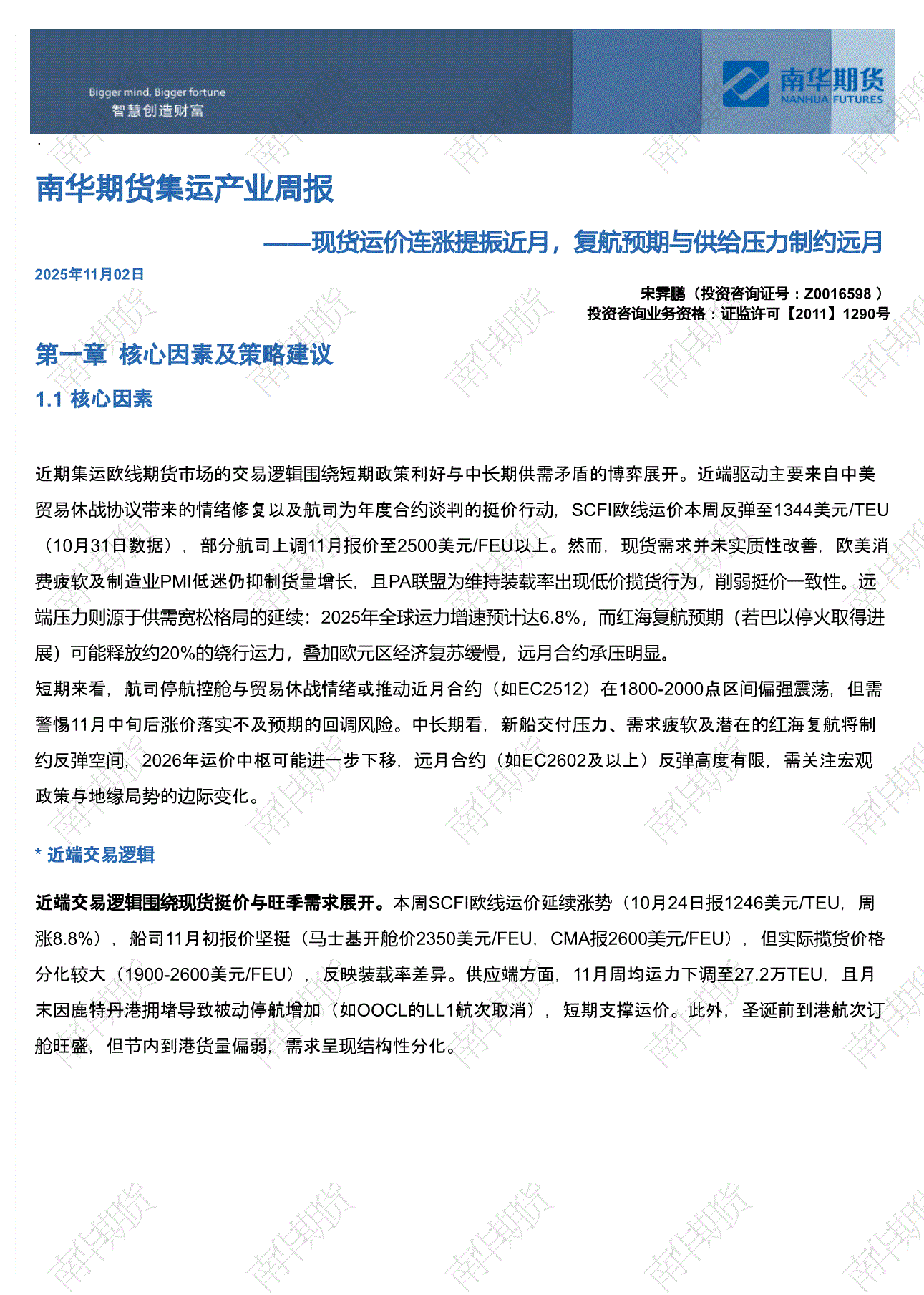 南华期货-集运产业周报:近强远弱格局延续,现货挺价与宏观压力博弈-251026