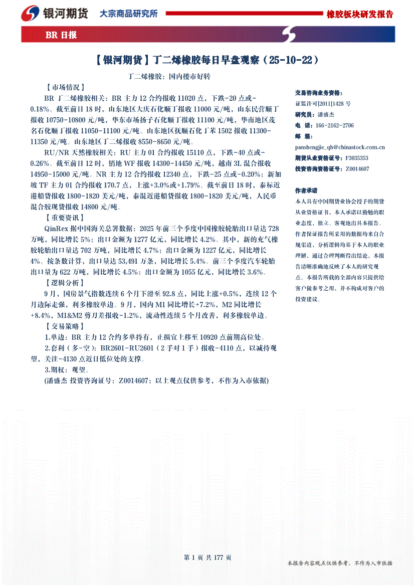 银河期货-丁二烯橡胶每日早盘观察-251022