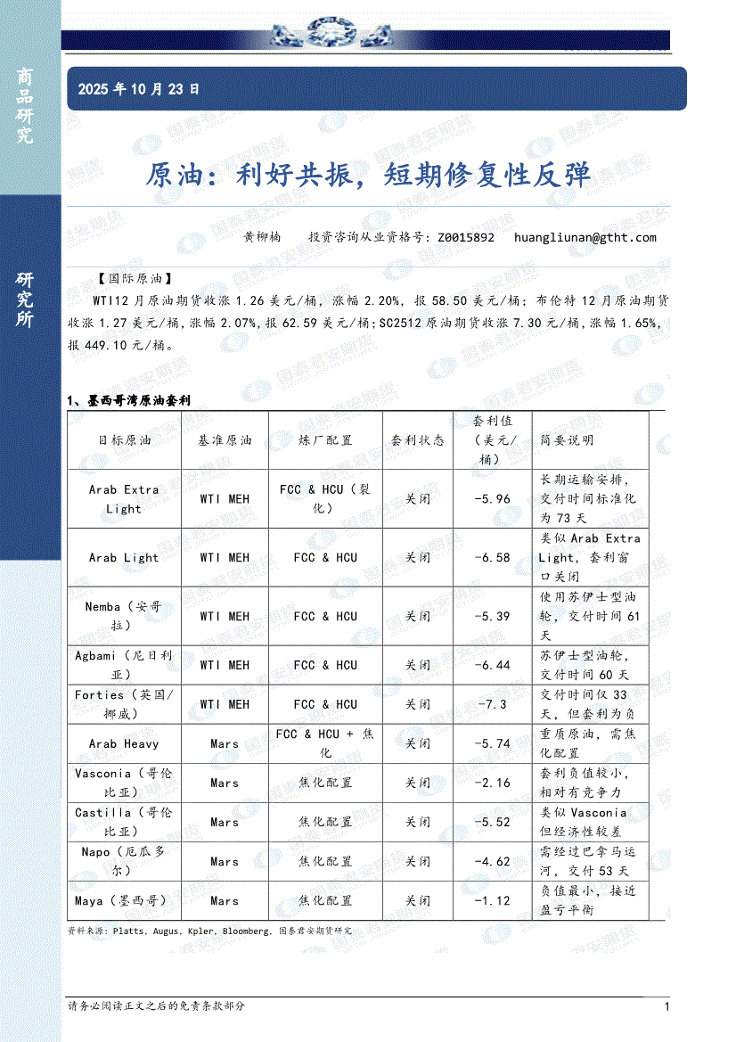 国泰君安期货-原油:利好共振,短期修复性反弹-251023