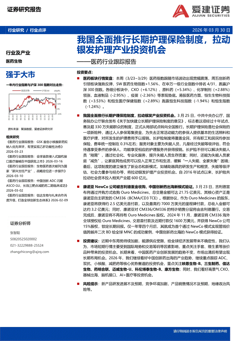 医药行业:爱建证券-医药行业跟踪报告:我国全面推行长期护理保险制度,拉动银发护理产业投资机会-260330