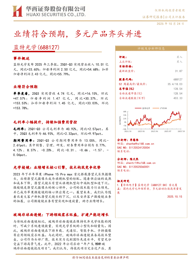 蓝特光学:华西证券-蓝特光学-688127-业绩符合预期,多元产品齐头并进-251024