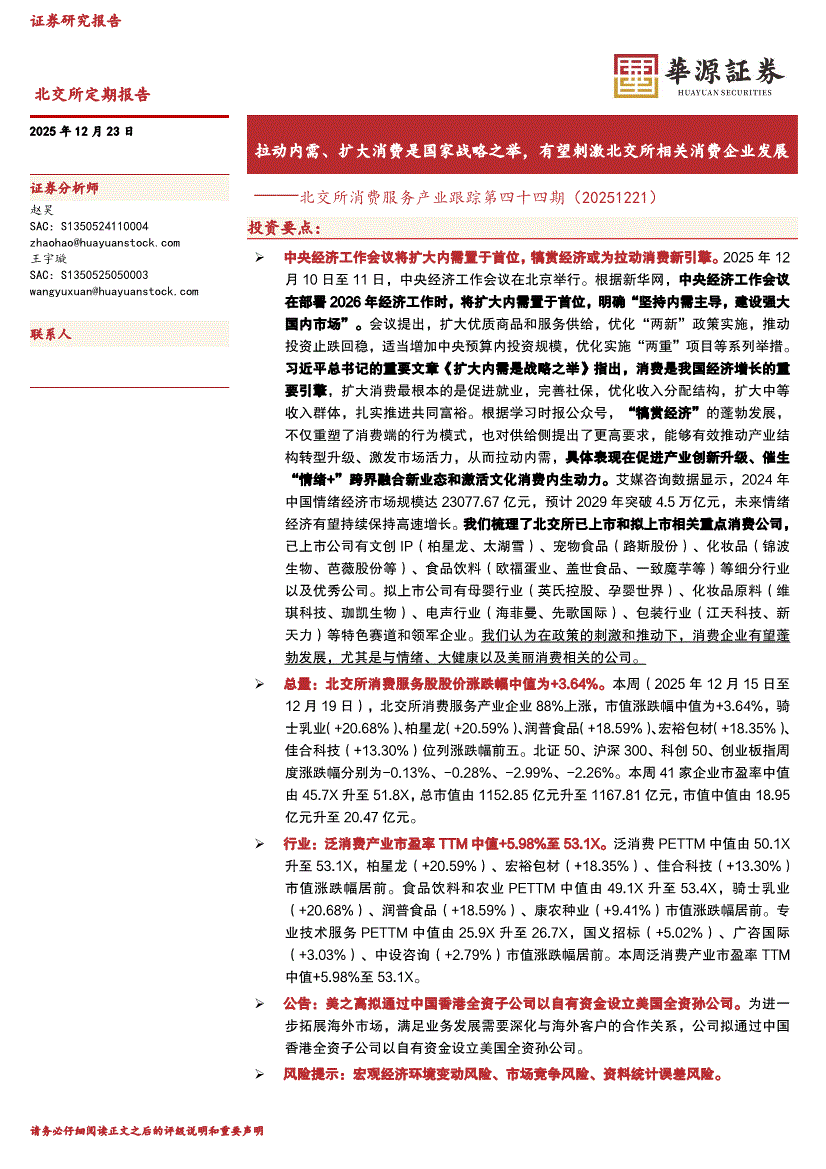 华源证券-北交所消费服务产业跟踪第四十四期:拉动内需、扩大消费是国家战略之举,有望刺激北交所相关消费企业发展-251223