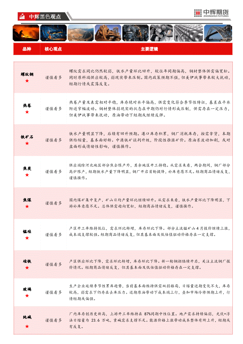 中辉期货-技术分析看黑色周报:铁矿领涨均收阳,双焦中阳材大涨-260315