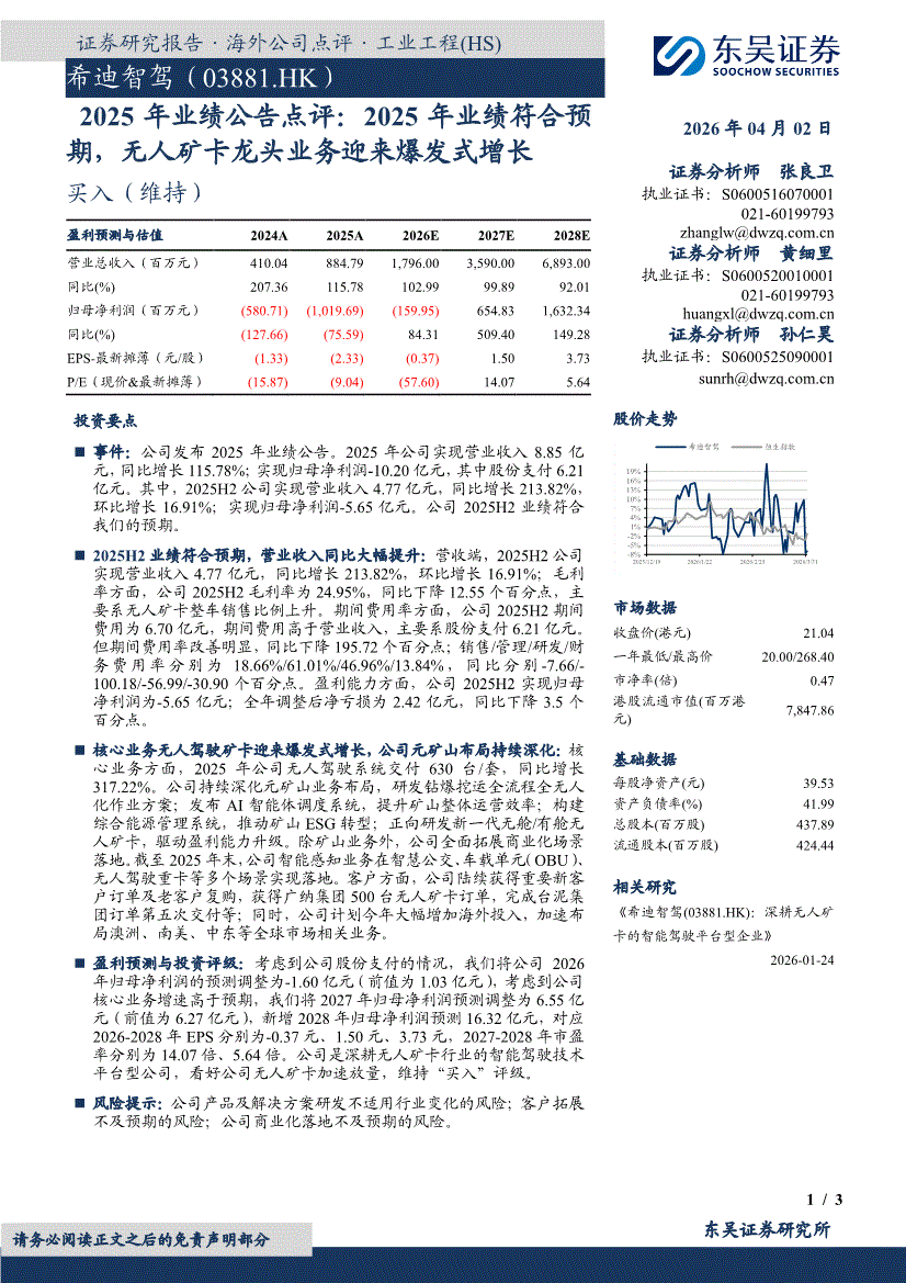 希迪智驾:东吴证券-希迪智驾-3881.HK-2025年业绩公告点评:2025年业绩符合预期,无人矿卡龙头业务迎来爆发式增长-260402