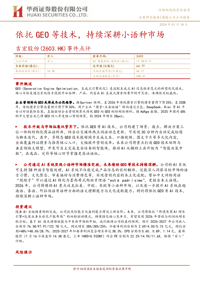 吉宏股份:华西证券-吉宏股份-2603.HK-事件点评:依托GEO等技术,持续深耕小语种市场-260118