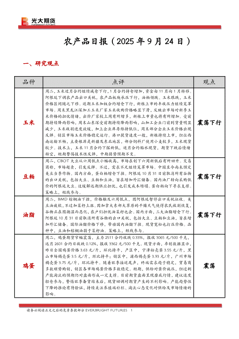 光大期货-农产品日报-250926