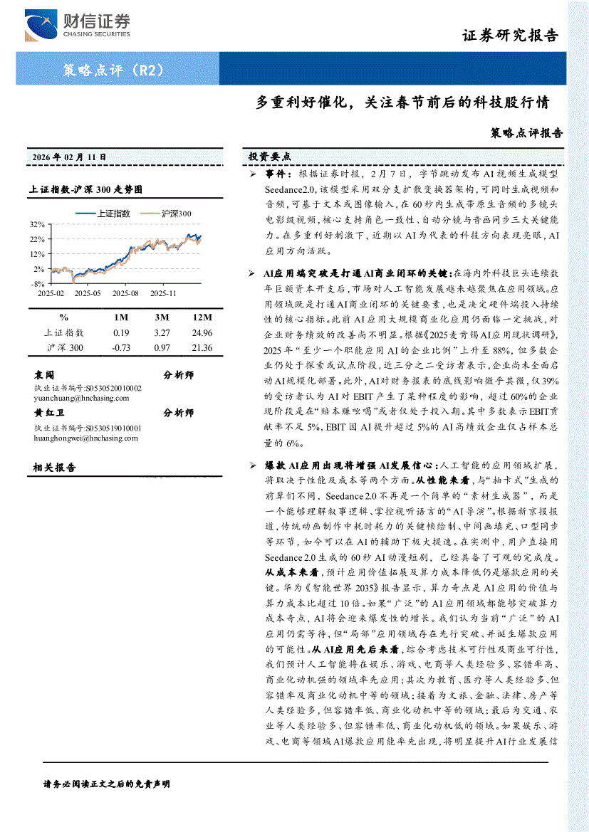 财信证券-策略点评报告:多重利好催化,关注春节前后的科技股行情-260211