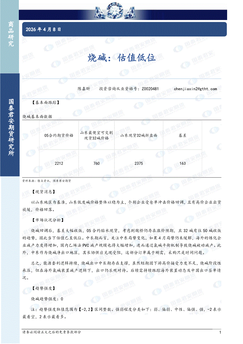 国泰君安期货-烧碱:估值低位-260408