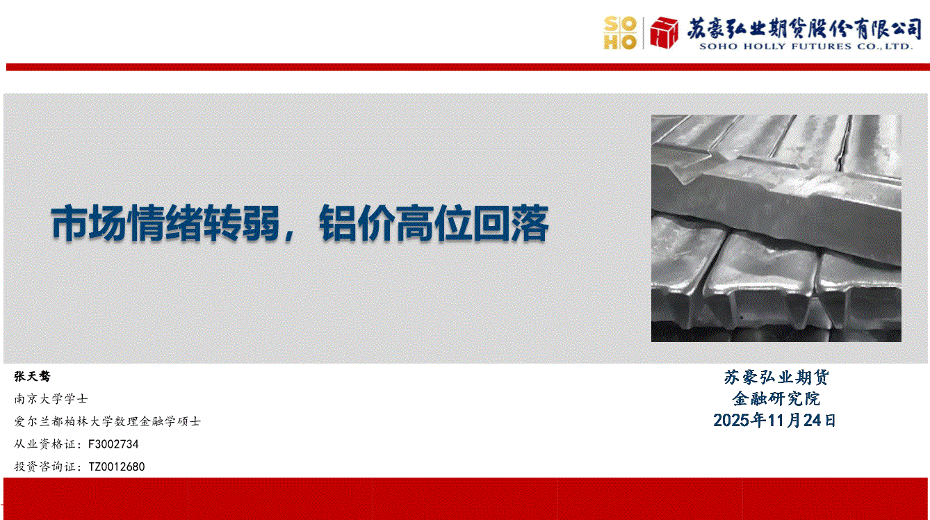 弘业期货-市场情绪转弱,铝价高位回落-251124
