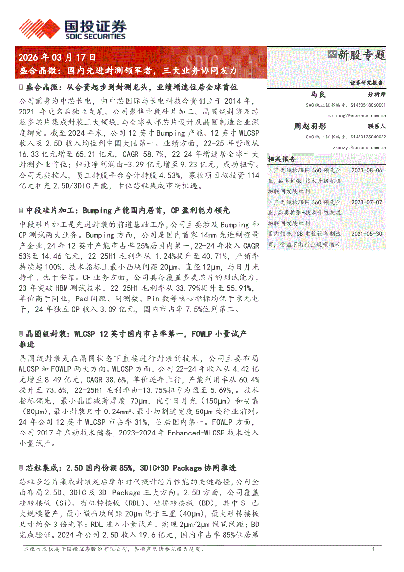 国投证券-新股专题:盛合晶微,国内先进封测领军者,三大业务协同发力-260317