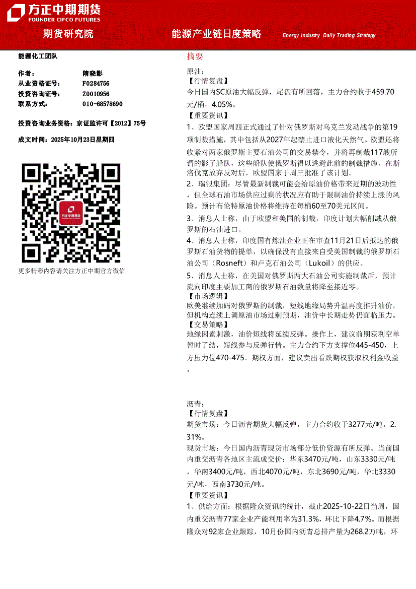 方正中期期货-沥青:成本施压,需求步入旺季-251001