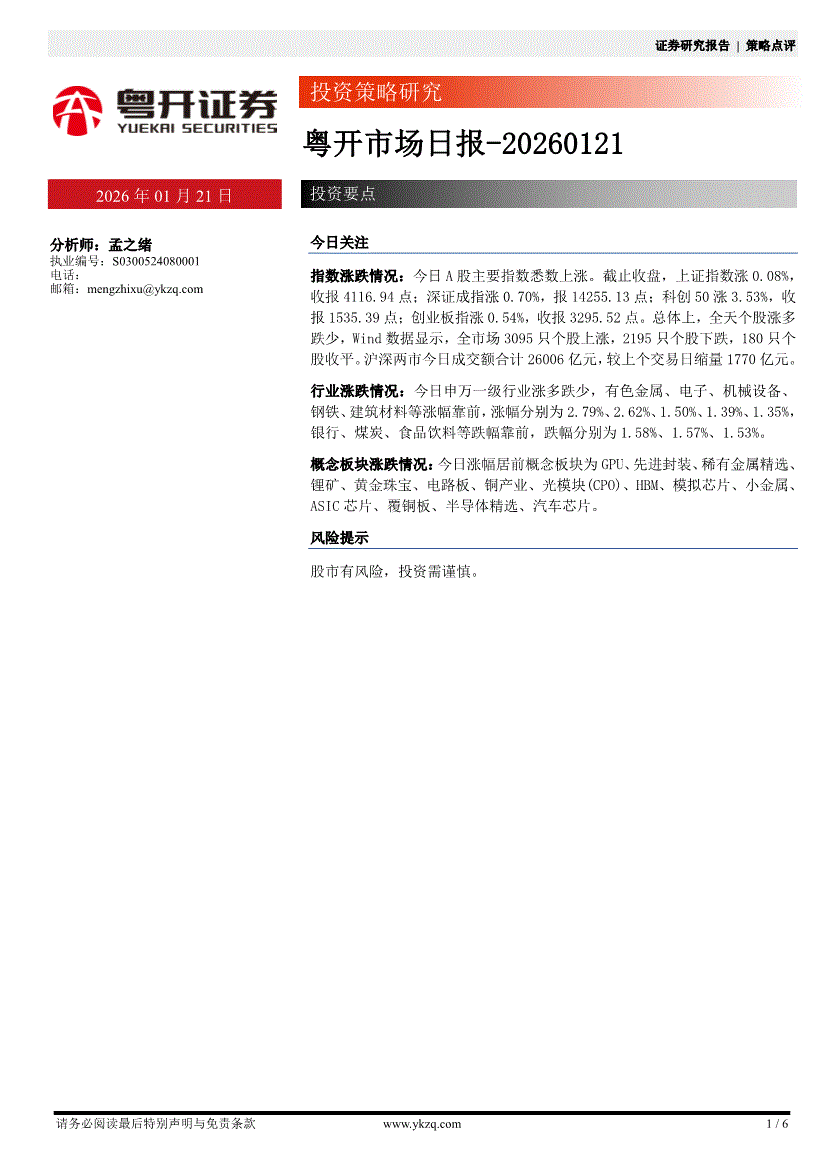 粤开证券-粤开市场日报-260121