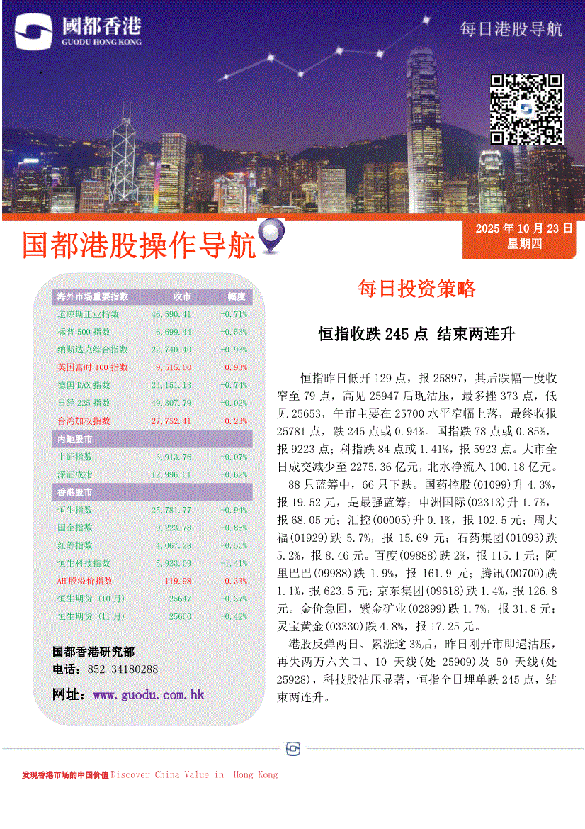 国都证券(香港)-每日港股导航-251023