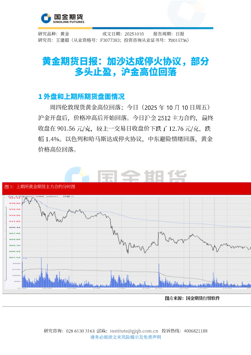 国金期货-黄金期货日报:加沙达成停火协议,部分多头止盈,沪金高位回落-251010