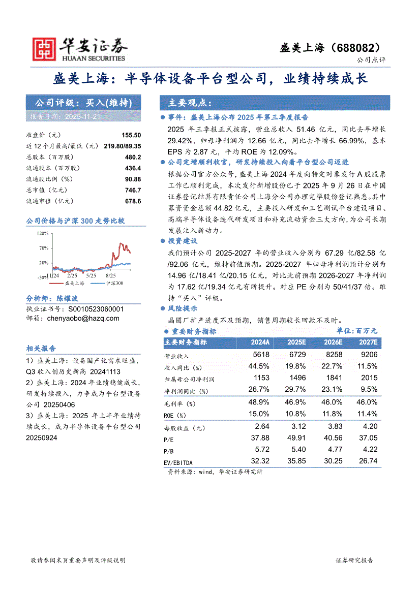 盛美上海:华安证券-盛美上海-688082-半导体设备平台型公司,业绩持续成长-251121