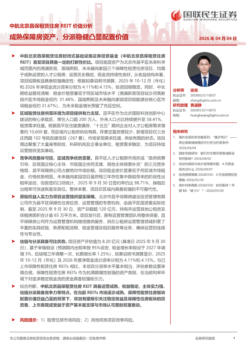 国联民生证券-中航北京昌保租赁住房REIT价值分析:成熟保障房资产,分派稳健凸显配置价值-260404