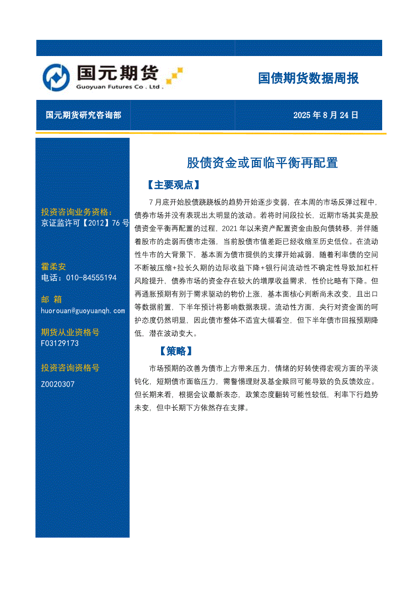 国元期货-国债期货数据周报:股债资金或面临平衡再配置-250824