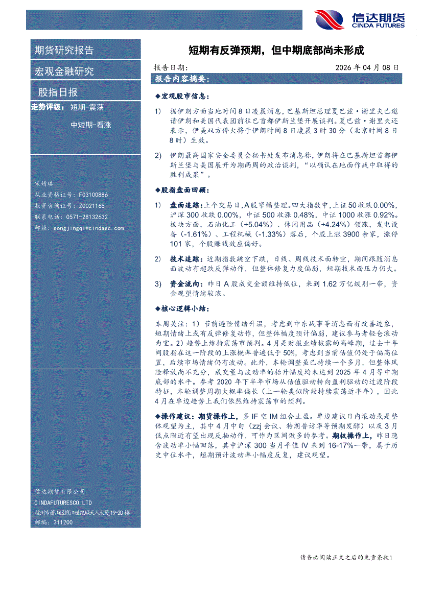 信达期货-股指日报:短期有反弹预期,但中期底部尚未形成-260408