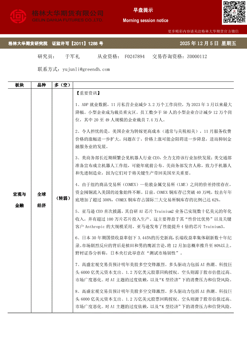 格林大华期货-一周简评:沪银创新高,白银库存持续下降-251114