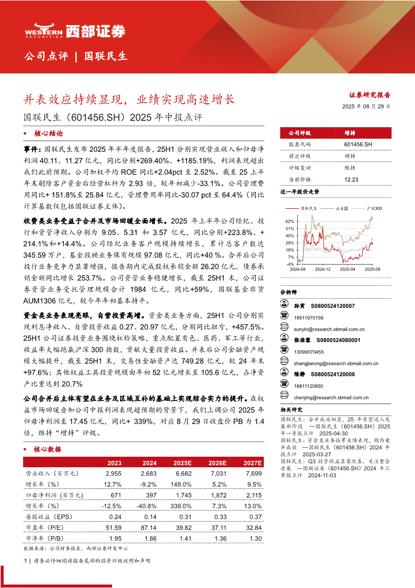 国联民生:西部证券-国联民生-601456-2025年中报点评:并表效应持续显现,业绩实现高速增长-250829