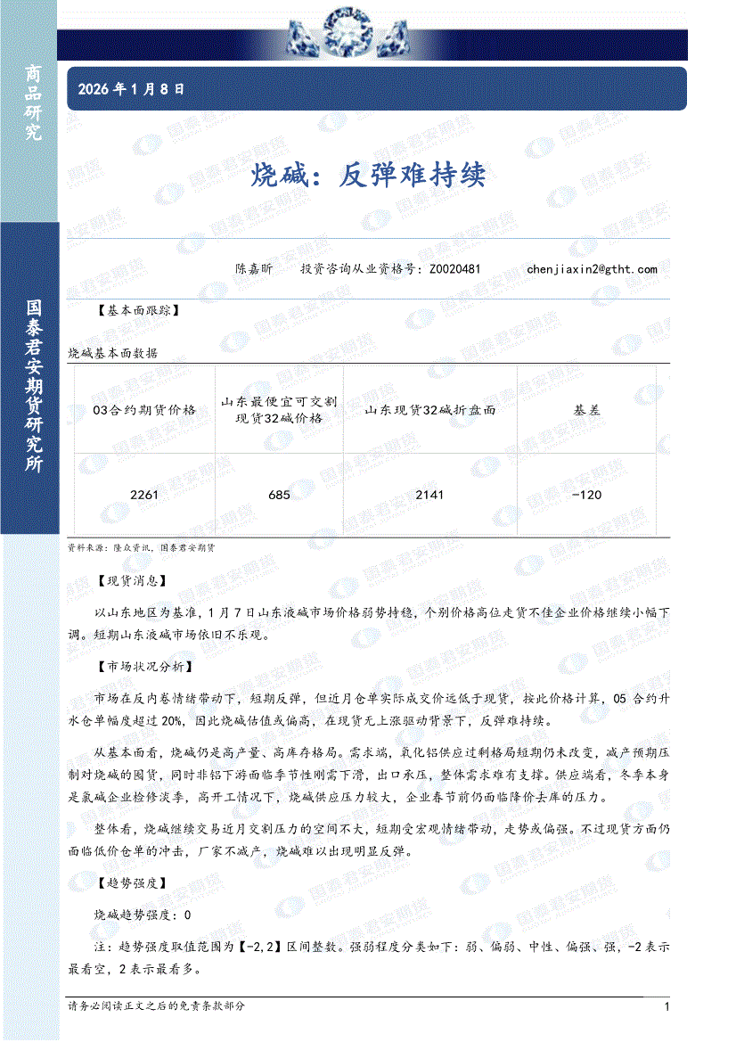 国泰君安期货-烧碱:短期反弹高度有限,关注1月交割压力-251229