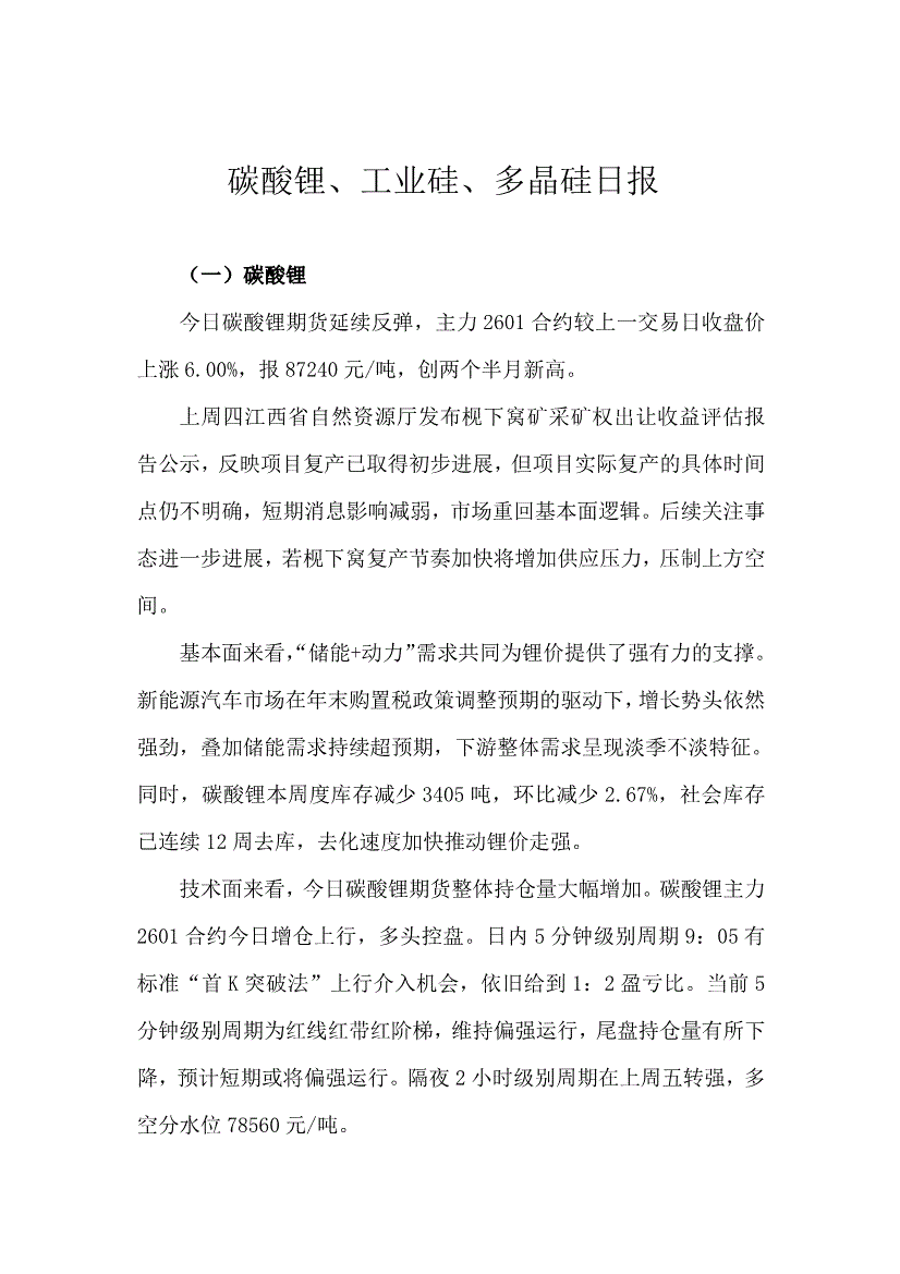 天富期货-碳酸锂、工业硅、多晶硅日报-251106