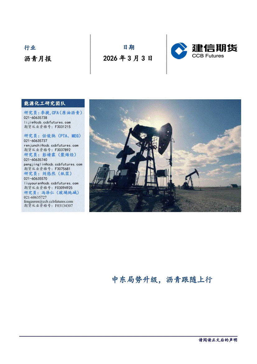 建信期货-沥青月报:中东局势升级,沥青跟随上行-260303